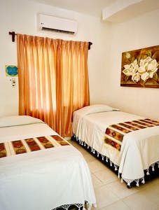 * Para personas extras no contamos con camillas adicionales por lo que se sugiere traer colchón inflable o sleeping bag. El cargo es de 300= pesos por persona extra por noche a partir de un año de edad. Por otro lado le informamos que somos Pet friendly. Tenemos un Pastos Belga en casa, es muy amigable con nuestras perritas Maltipoo y Chihuahuas, más nos puede llegar a preocupar su reacción con otros animalitos. Hasta la fecha ha sido bien portado con todos nuestros huéspedes y animalitos que nos visitan y nunca se ha presentado incidente alguno. Si Usted decide traer a su mascota es bajo su propio riesgo. Solo pedimos que se haga cargo de sus desechos, que no llore si lo mantiene en jaula y no moleste o lastime a nadie. Puede pernoctar adentro de la habitación, solo por favor no lo suba a la cama. La tarifa única de estancia hasta 2 noches es de 280= pesos. El costo por renta de asador es de 100= pesos por día de uso.