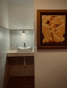 On the first floor. Located right in front of the pool area, to one side of the covered outdoor room and the restaurant, ideal for 2 people, with a king-size bed, closet and full bathroom. Right next to one of the outer rooms. Up to 3 people are allowed in this room.