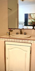 On the first floor. With a two double beds, ideal for up to 4 people, with a side view of the pool and garden. Combination shower and toilet. Separate sink and small closet. It has an exclusive garden dining room. Up to 6 people are allowed in this room.