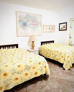 On the first floor. With a double bed, ideal for four people, with furniture for common use on the outside terrace. Combination of shower, toilet and sink. Overlooking gardens and general parking. Very comfortable. Up to 6 people are allowed in this room.